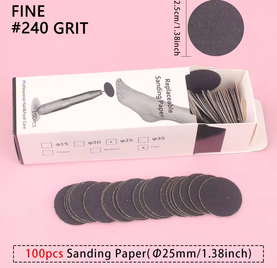 100 LIJAS PARA FRESA DE PEDICURE (LIJA REPUESTO PODODISC) #240 – INS1701D