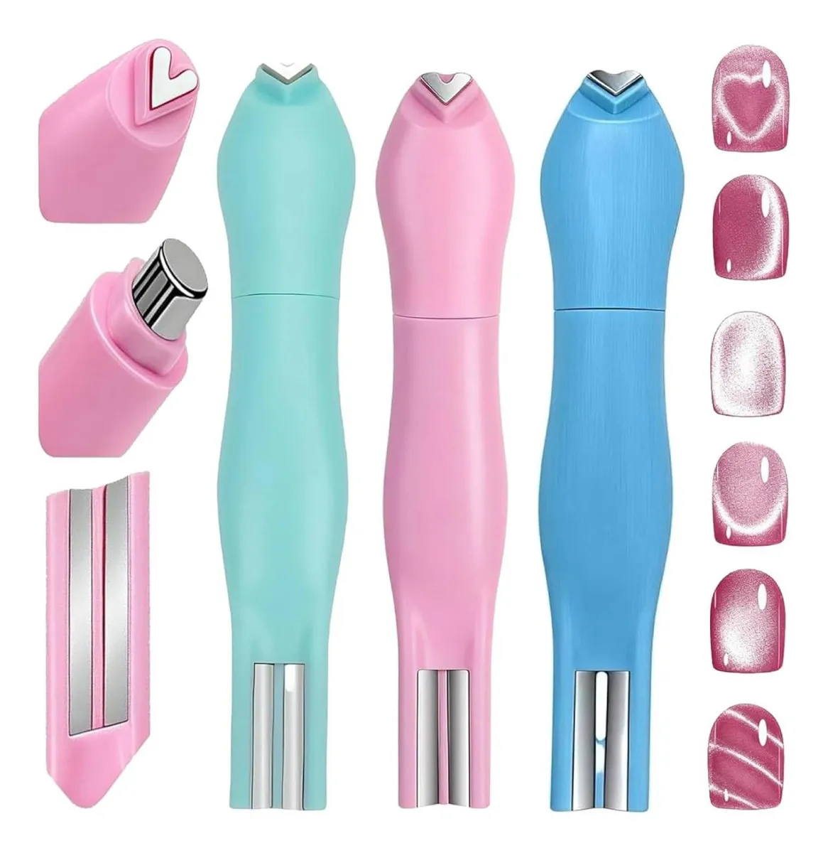 Crea diseños únicos y llenos de brillo con este imán especial para esmaltes efecto ojo de gato. Su prático diseño te permite lograr diferentes estilos magnéticos como corazón, circular o cola de serpiente, todo con un solo accesorio.